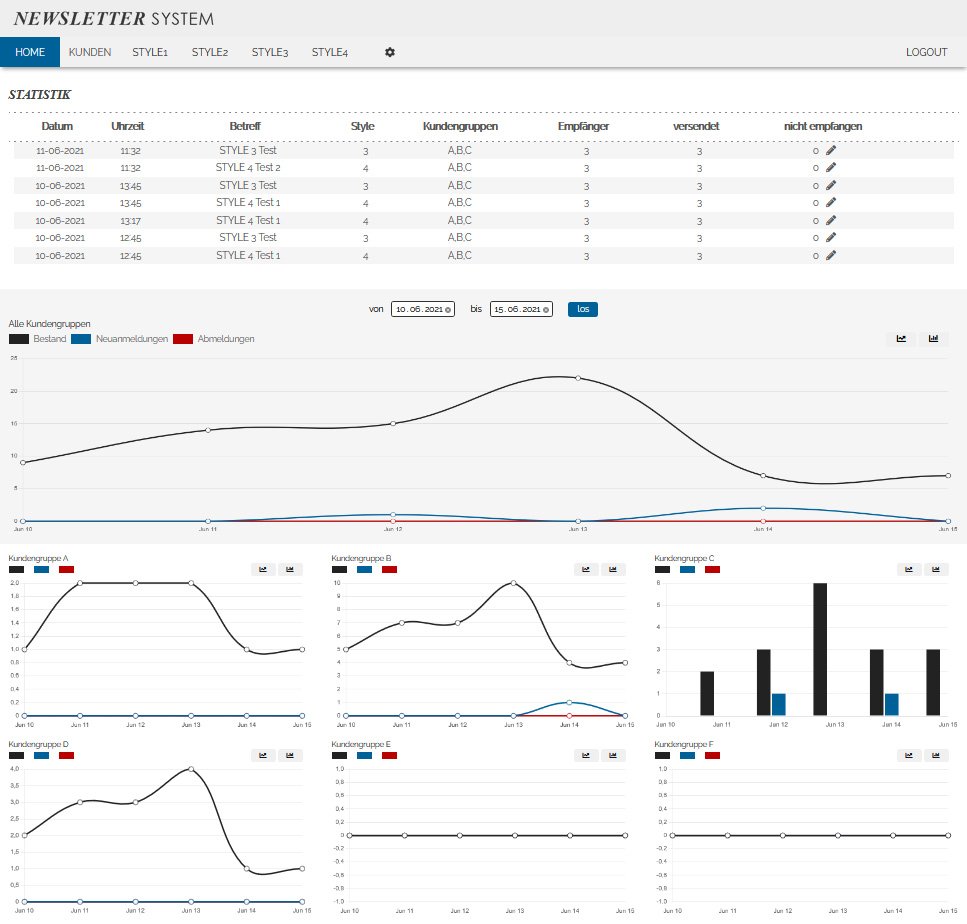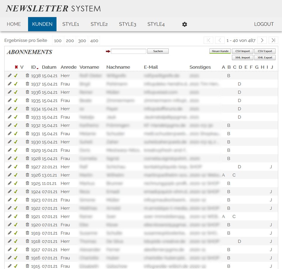 die Newslettereinträge können verwaltet und editiert werden