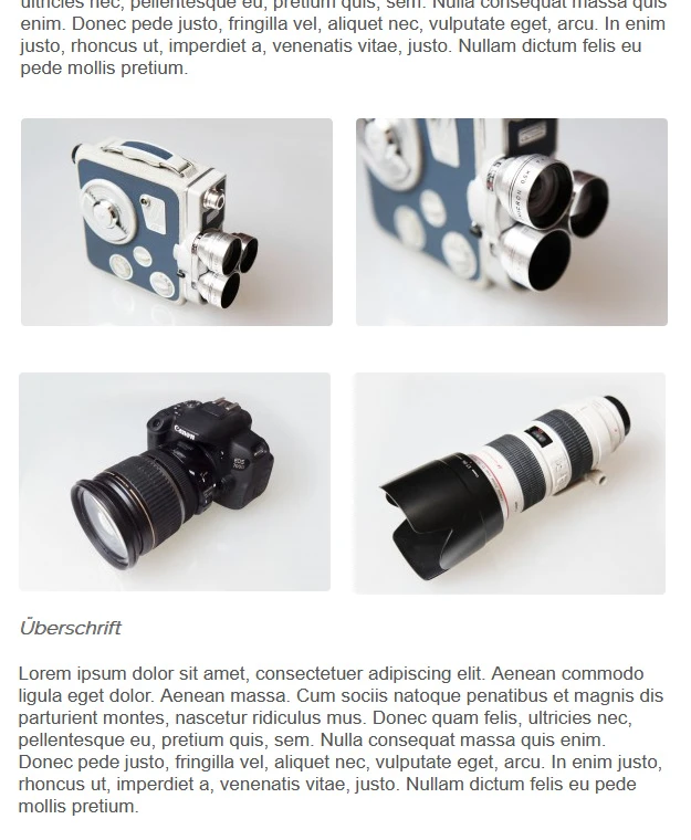 Angenommen SIe verwenden STYLE 1 und möchten 4 Bilder über einem Text zeigen, dann lassen Sie einfach einen Textabschnitt leer.